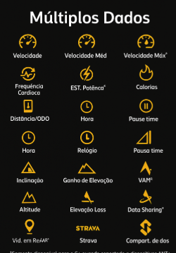 Registro de até 15 dados em tempo real, incluindo velocidade, tempo, distância e altimetria (no modelo Plus).